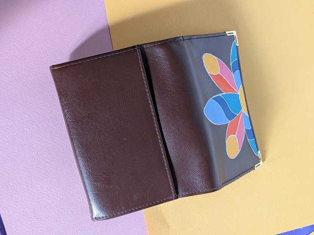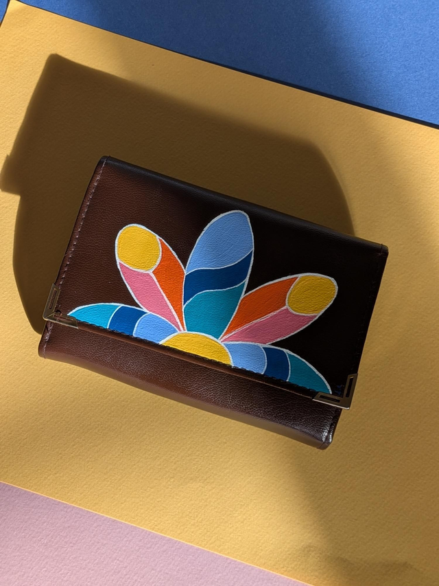 L'arlequin est un portefeuille peint à la main. Pièce unique.