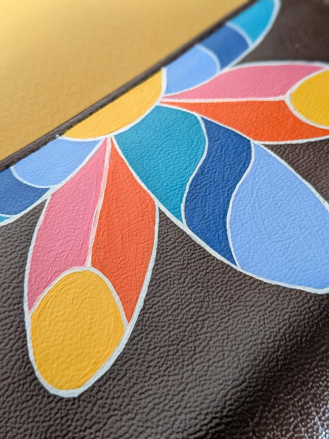 6. Motif: peinture acrylique spécial cuir,protégée par vernis